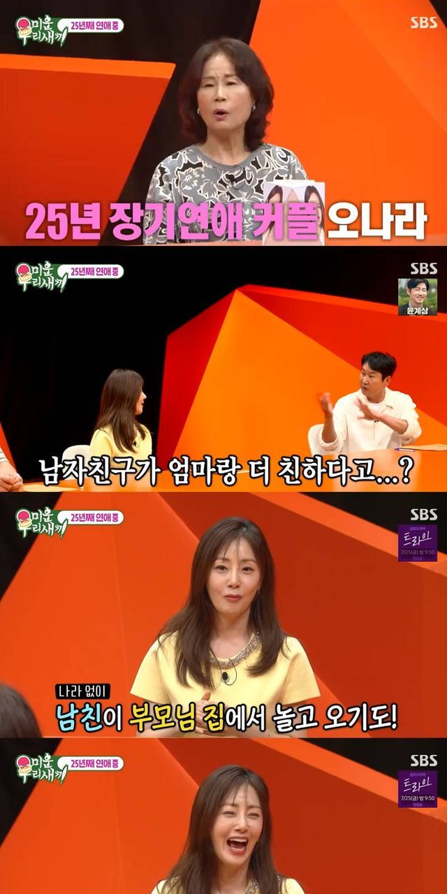 이날 방송에서 오나라는 남자친구와 25년 장기 연애 중인 근황을 전했다. 신동엽은 "오나라씨 남자친구인데 엄마랑 더 친하다고. 살갑게 잘 지내시냐"라고 질문을 했고, 오나라는 "저희 엄마랑 궁합이 잘 맞는 것 같다. 엄마아빠 대신 혼자 놀다 오기도 한다. 너무 고맙다. 챙겨주니까"라고 이야기했다.