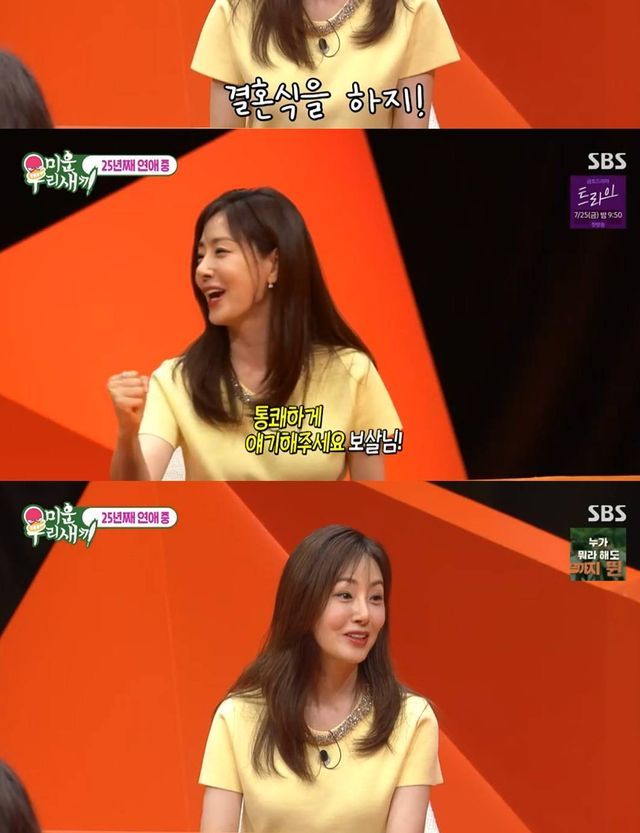 (엑스포츠뉴스 이예진 기자) 배우 오나라가 뮤지컬 배우 출신 교수 김도훈과 25년 장기 연애 중인 가운데 결혼에 대한 생각을 밝혔다.