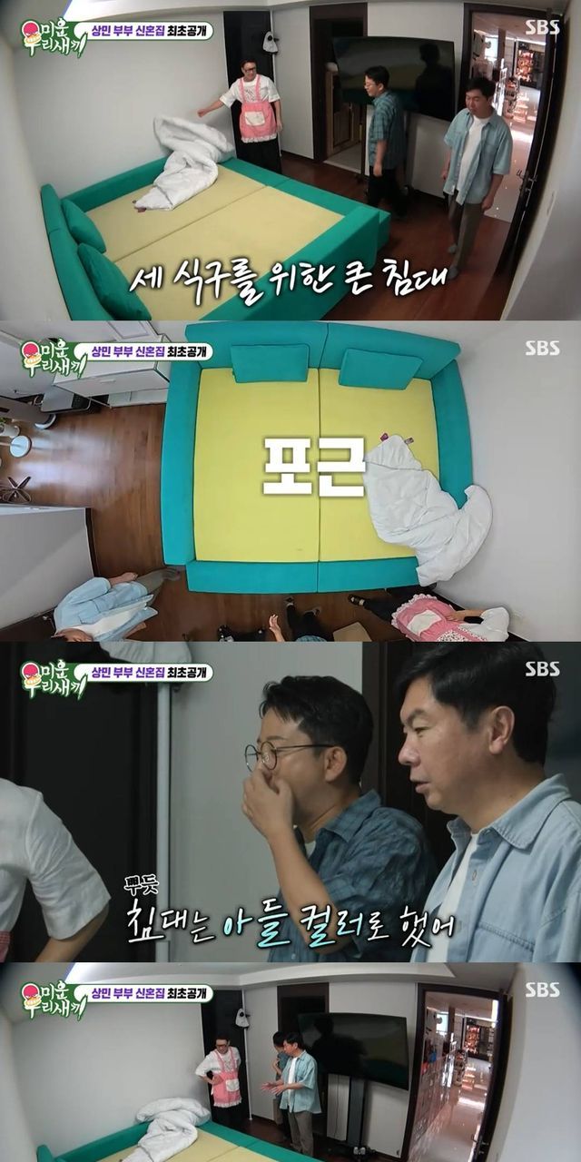 이날 방송에서 김준호, 임원희가 이상민의 신혼집을 방문했다. 침대가 있는 안방을 소개하며 이상민은 "아내와 나와 아이 방"이라고 소개했다. 이어 "아들 컬러로 지정했다"라고 침대 색깔을 설명했다. 이어 이상민은 아기방을 소개했다. 아기 신발에 모빌, 인형까지 준비돼있어 눈길을 끌었다.