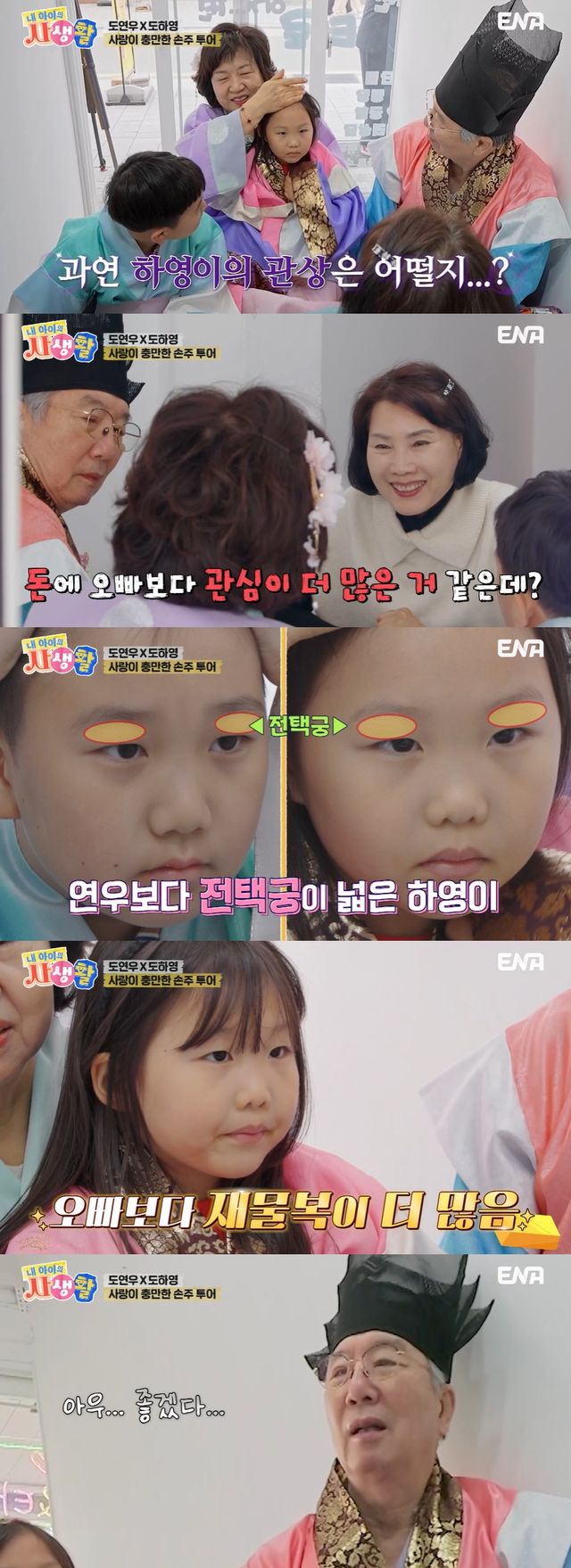 연우의 할머니가 관상가에게 하영이 관상을 묻자, 관상가는 "하영이는 돈에 오빠보다 관심이 더 많은 것 같다. 연우보다 하영이가 전택궁이 훨씬 더 발달했다. 얘는 되게 재물복이 있다"라고 전했다.