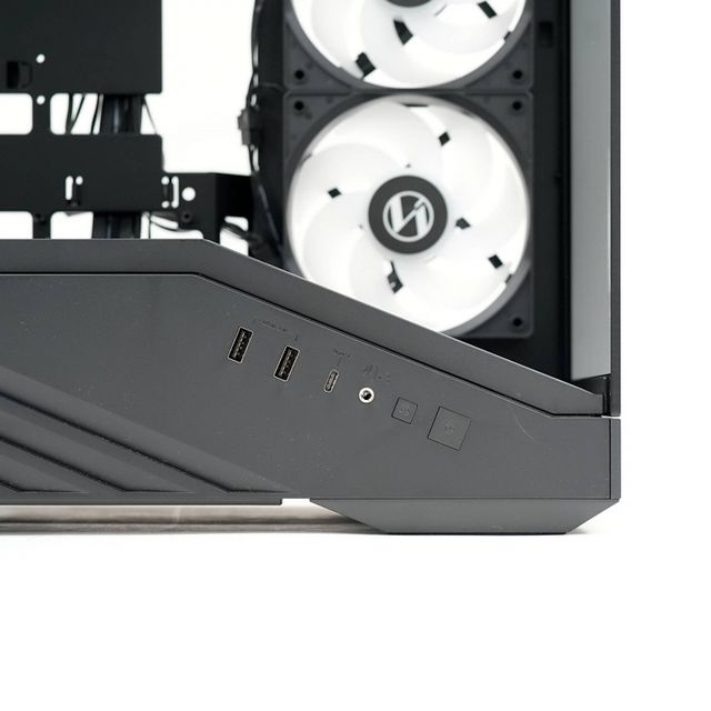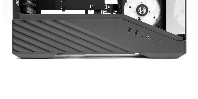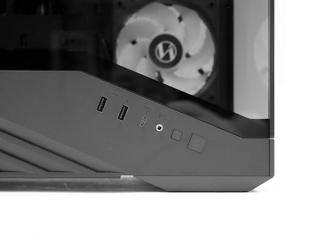 I/O 포트 구성도 독특하다. 상단이 아닌 측면에 위치해 있는데, 사선으로 배치된 디자인 덕분에 케이스 외형과 시각적으로 조화를 이룬다. 사실 처음 볼 때는 잠깐 당황했고, 그다음에는 머리가 좋다는 생각이 들었다. USB 3.1 Type-C, USB 3.0 포트 2개, 오디오 단자, 전원 버튼, 리셋 버튼이 일렬로 정돈되어 있다. 별거 아닌 디자인임에도 은근 눈에 띈다.