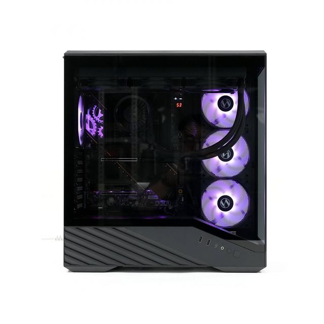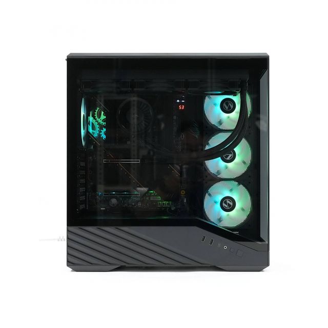 잘생김으로 무장한 보기 드문 케이스 벡터 V100 ARGB에 대해 다음과 같이 요약할 수 있다. 감성과 기능 사이의 균형을 잘 잡은 미들타워 케이스다. 전면과 측면을 감싸는 270도 강화유리, 은은한 ARGB 조명, 사선 구조의 I/O 포트가 정체성에 영향을 준다.