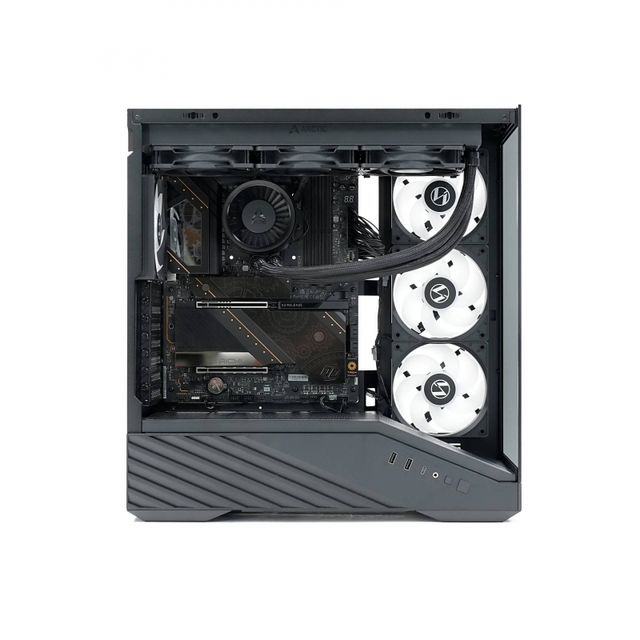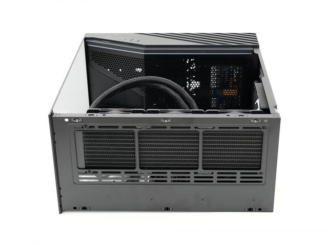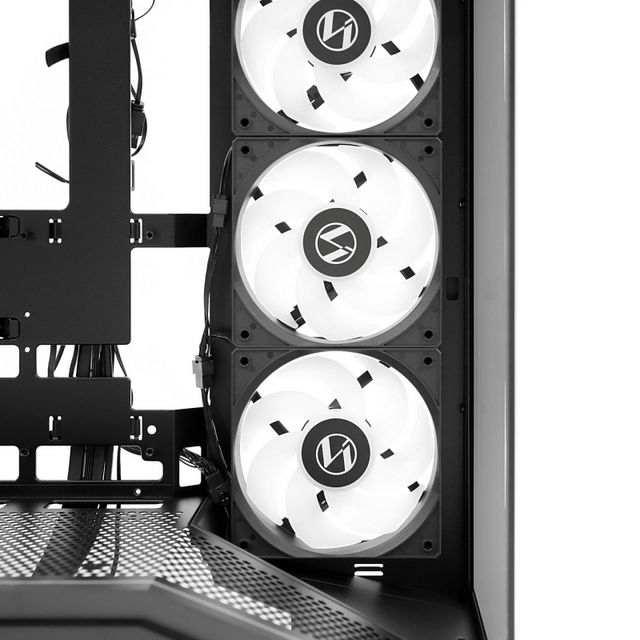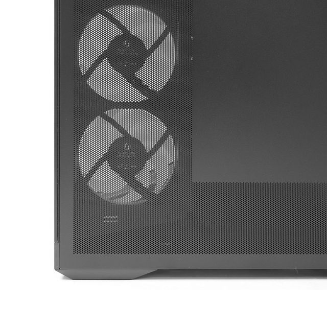 라디에이터는 상단에 최대 360 mm까지 설치 가능하고, 측면에도 120 mm 팬 3개가 들어간다. 팬은 최대 9개까지 장착 가능하다. 후면은 120/140 mm 팬 1개, 측면은 120 mm 팬 3개, 하단은 120 mm 팬 2개라고 생각하면 되겠다. 상단은 앞서 말했듯 120 mm 팬 3개 구성이다.