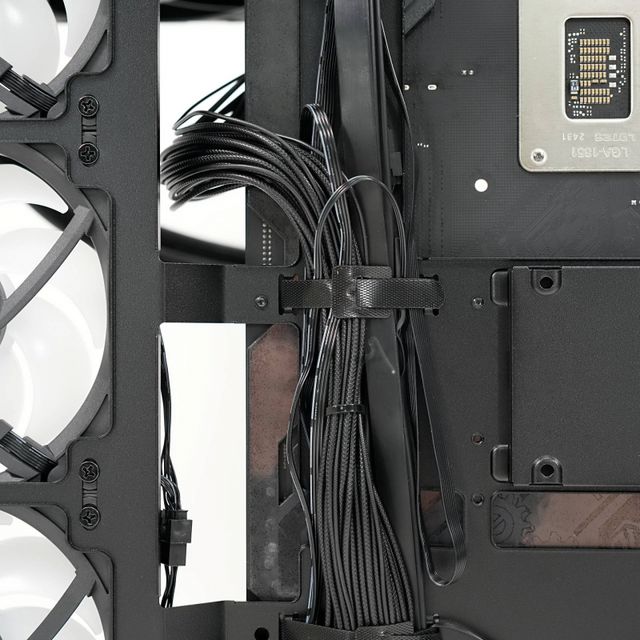 그럼 일반 메인보드를 사용하면? 이 또한 걱정 없다. 후면 공간도 넉넉하다. 선정리 공간이 여유롭게 설계되어 있어 케이블이 두껍더라도 자연스럽게 수납할 수 있다. 전용 선정리 홀이 곳곳에 배치되어 있고, 벨크로 스트랩과 가이드가 기본 제공되니 선정리 난이도는 최하급이다. 단순히 연결하는 것이 아니라 정리하는 재미를 느낄 수 있게 했다.