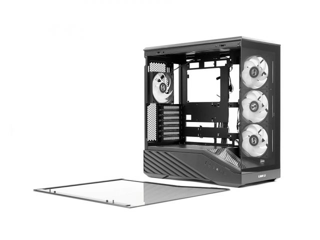 여기까지만 했더라면 벡터 V100 ARGB가 흔히 볼 수 있는 투명한 ‘어항 케이스’에 불과했다. 그렇다면 굳이 이렇게까지 칭찬은 하지 않았을 것이다. 그 점에서 리안리는 발상을 또 한 번 달리하는데, 일종의 재미라는 요소를 가미한다. 예를 들면 피규어를 전시하는 스탠딩?