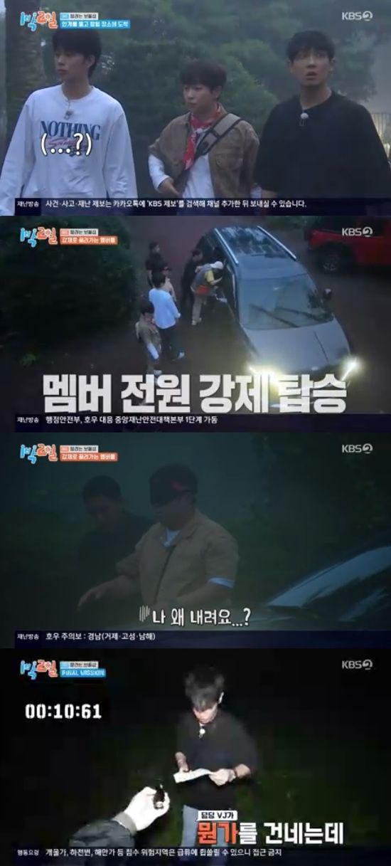 이날 멤버들은 궂은 날씨로 인해 안개가 자욱항 상황에서 의문의 장소에 도착해 안대를 착용하게 됐다.