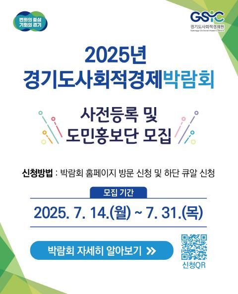 [파이낸셜경제=김영란 기자] 경기도와 경기도사회적경제원은 오는 9월 12일과 13일 양일간 수원컨벤션센터에서 열리는 ‘2025년 경기도사회적경제박람회’의 공식 누리집을 7월 14일 오픈하고 본격 홍보에 돌입했다.