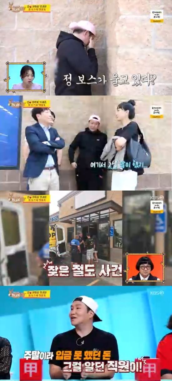 송정훈은 한 번은 주말이라서 매출을 입금을 못했는데 그걸 알던 직원이 나쁜 친구들과 함께 돈은 물론, 카메라까지 훔쳐서 5천만 원 이상 손해를 본 적도 있다고 했다.