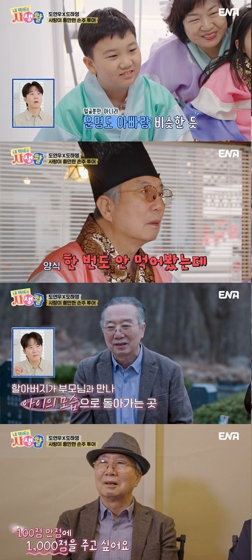 13일 방송된 ENA 일요예능 ‘내 아이의 사생활’(이하 ‘내생활’) 29회에서는 조부모님의 결혼 50주년을 맞아, 신혼여행지였던 경주로 ‘손주투어’를 떠난 도도남매 연우, 하영이와 반려견 성탄이와 함께 ‘멍플스테이’(강아지+템플스테이)를 떠난 도아의 이야기가 그려졌다.