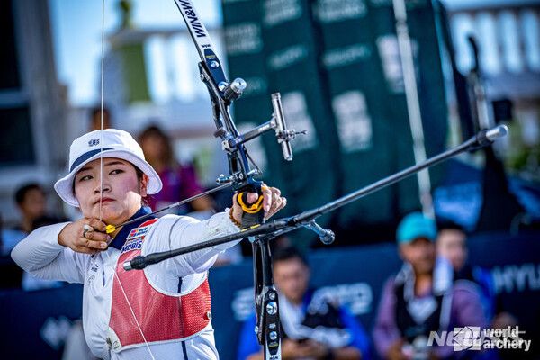 앞서 강채영은 안산(광주은행), 임시현(한국체대)와 함께 출전한 여자 단체전 결승에서도 중국을 6-2(57-55 57-57 56-56 56-55)로 눌러, 이번 대회 2관왕을 달성했다.
