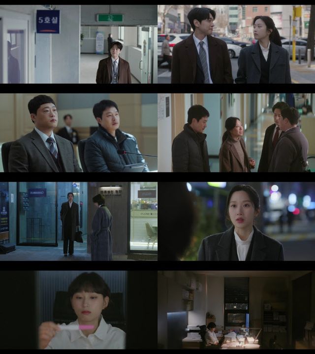 그런가 하면 배문정은 임신을 의미하는 두 줄이 뜬 임신 테스트기를 보며 생각에 잠겼다. 단순한 컨디션 난조가 아닌 임신이 맞다면 앞으로의 직장생활에도 새로운 변수가 생기는 상황. 기쁨도, 슬픔도 아닌 오묘한 감정에 휩싸인 배문정의 얼굴에는 고민의 흔적이 역력하게 묻어났다. 과연 서로 다른 고민과 애환을 품고 잠 못 이루는 어쏘 변호사들이 앞으로 어떤 일상을 마주하게 될지 궁금해지고 있다.