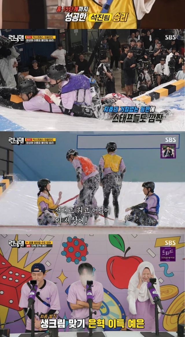 마지막 베팅 게임 ‘홀짝 일어났수다’에서는 지석진이 판을 뒤흔들었다. 코인까지 써가며 멤버들을 회유했지만 뜻대로 되지 않았고 돌아온 건 배신이었다. ‘런닝맨’ 특유의 시기와 비난이 난무했고 ‘불나방’ 베팅까지 벌어지며 최종 결과를 예측 불허였다. 결국 1등은 규현과 규현이 뽑은 김종국이 금반지를 획득했고 이특, 은혁, 지예은이 ‘런닝맨 시그니처 벌칙’ 생크림 폭탄에 당첨됐다.