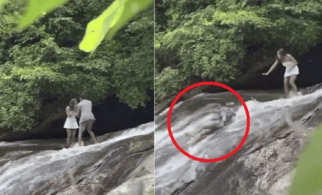 당시 프러포즈 영상이 공개됐는데, 남성이 여자친구를 폭포 꼭대기로 데려가 무릎을 꿇고 반지를 꺼내려고 했고, 감동한 듯 바라보던 여자친구가 남성을 향해 손을 내밀던 찰나에 남성의 발이 미끄러졌다. 여성은 소리를 지르는 등 충격에 빠진 모습이었다.