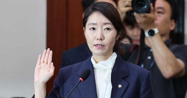강선우 여성가족부 장관 후보자가 14일 서울 여의도 국회에서 열린 인사청문회에 출석해 선서하고 있다. / 뉴스1