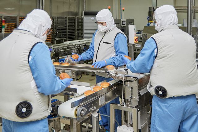 우선 파리크라상·비알코리아의 생산 현장에는 착용감과 냉방 지속력을 높인 ‘경량형 냉풍조끼’를 지급했다. 조끼에 소형 선풍기가 달려 있는 보냉장구다. 기존 얼음팩 등을 사용하는 일반 냉조끼에 비해 가볍고, 축축함이 없다.