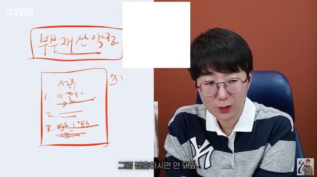 그는 특히 결혼 전 재산을 특유재산으로 한다는 항목을 언급하며 "나중에 재산분할 대상이 되지 않는다고 적어라. 또 (전처와 아이) 양육과 면접 교섭 등도 적어라. 이걸 쓰기 싫어하면 결혼하면 안 된다"고 단호히 말했다.