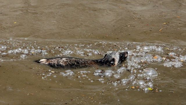 폭우로 갑자기 수량이 불어나면서 서울 청계천에서 너구리 한 마리가 급류에 떠내려가고 있다. 기사 이해를 돕기 위한 자료 사진 / 연합뉴스