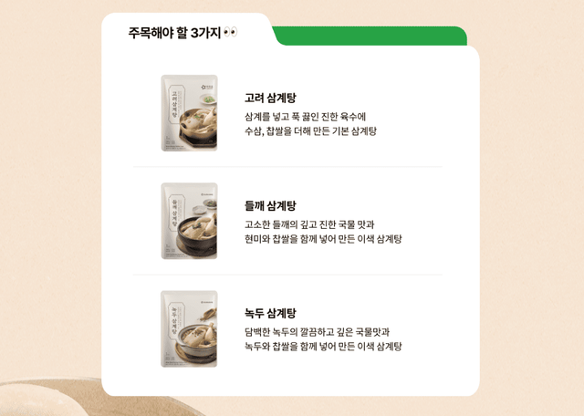 기획전은 2025년 7월 20일까지 진행된다. 이번 행사에는 삼계탕 3종이 포함되며, 할인 혜택과 경품 이벤트가 동시에 운영된다.
