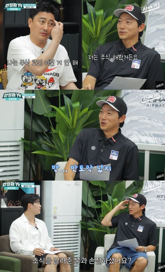 영상에서 김남일은 "선수 때 주식 안 해봤냐"고 물었다. 안정환은 "난 주식 코인 안 한다"고 답했다.