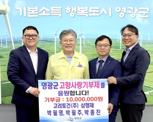 이번 기부는 박종진 대표(고려토건)를 비롯해 박필영 사무관(전남도청), 박필주 단장(한국환경산업기술원) 형제가 함께 참여해 의미를 더했으며, 영광군에서는 삼형제가 고향을 위해 뜻을 모아 함께 기부한 것은 이번이 처음이다.