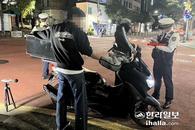 서귀포 도심지 이륜자동차 소음 민원 야간 단속. 서귀포시 제공