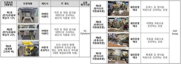 식약처는 지난해 11월 식품접객업소 등을 중심으로 확산되고 있는 자동화 식품용 기기의 위생안전관리 강화와 조리로봇 산업의 세계 시장 진출을 지원하기 위해 국내 기준에 국제 통용 기준(NSF)의 중요사항을 더한 '식품용 기기 안전관리 인증 기준'을 마련했다. 올해 2월에 조리로봇용 그리퍼 바(Gripper Bar) 등 3개 제품을 인증했다.