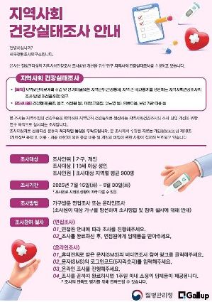 질병관리청이 7월 15일부터 9월 30일까지 전국 9개 시·군·구에서 19세 이상 8,100명을 대상으로 지역사회건강조사에 비대면 방식을 도입하는 혼합조사 시범사업을 시행한다.