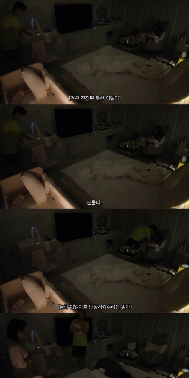 하지만 이엘은 금방 잠에서 깨 울음을 터트렸고, 이수민은 "또 깜짝 놀랐어? 모로 반사 때문에 자꾸 깜짝 놀라지", "엄마가 있잖아, 괜찮아"라며 딸을 다독였다.