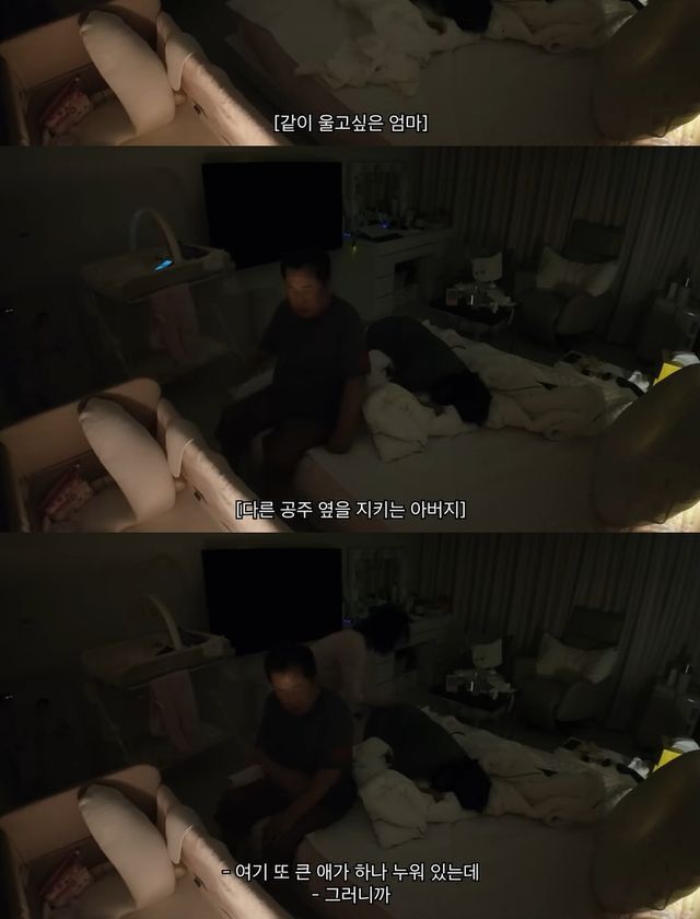 이수민이 계속해서 침대에 엎드려있자 이용식은 옆에 걸터앉아 "여기 또 큰 애가 하나 누워 있다"며 딸을 향해 정되는 마음을 드러냈고, 이어 이수민의 어머니도 "그러니까"라며 딸을 토닥이는 모습을 보였다.