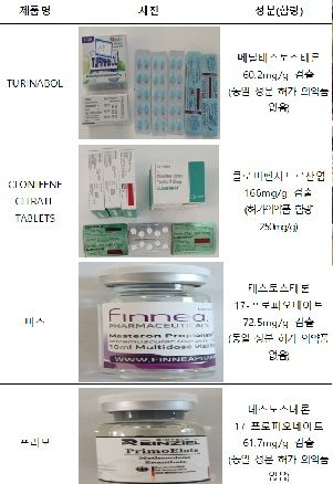 한편 압수된 스테로이드제제는 단백질의 생성을 촉진하는 합성 스테로이드(단백동화스테로이드, Anabolic Steroid)로 투여 시 면역체계 파괴, 성기능 장애, 심장병, 간암 유발 등 심각한 부작용을 초래할 수 있어 의사의 처방 없이는 사용이 제한된 전문의약품이다.