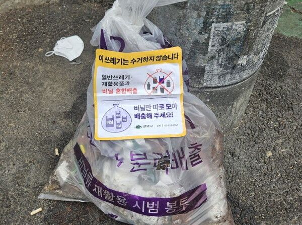 서울 강북구(구청장 이순희)는 내년부터 시행되는 생활 폐기물 직매립 금지 정책에 선제 대응하고자 폐비닐 분리 배출 활성화를 위한 홍보에 나선다고 14일 밝혔다.