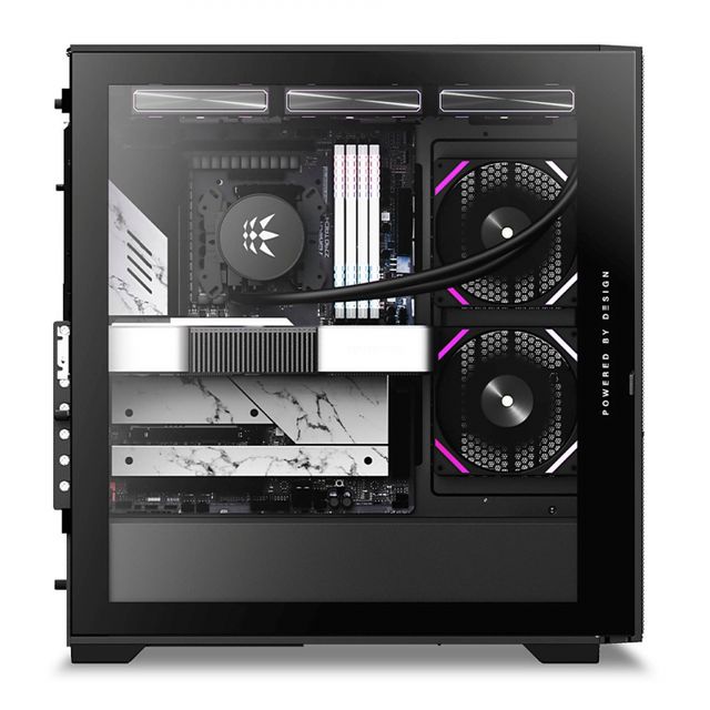 내부는 최대 390mm 길이의 그래픽카드, 최대 170mm 높이의 CPU 쿨러, 전면 420mm 및 상단 360mm 수랭 라디에이터 장착을 지원한다. USB 3.2 Gen2 Type-C 포트를 포함한 최신 I/O 구성과 선정리 편의성을 고려한 내부 구조도 특징이다.