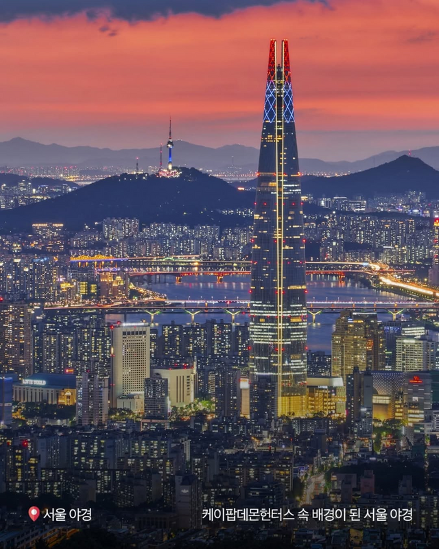 영화에선 '섬유원지역'이었던 지하철 역사는 자양역입니다. 또 롯데타워와 한강, 대교들이 돋보이는 야경은 어느 각도에서 봐도 영화의 배경이 서울임을 알 수 있도록 쓰였어요. 진우가 팬의 감자핫도그에 머스타드 소스를 뿌려준 노점을 보니 명동 길거리 음식들이 떠오르는군요. 〈케이팝 데몬 헌터스〉에 푹 빠져 버린 팬이라면 영화 곳곳에 묻어 있는 서울 투어를 해 보는 것도 좋겠어요.
