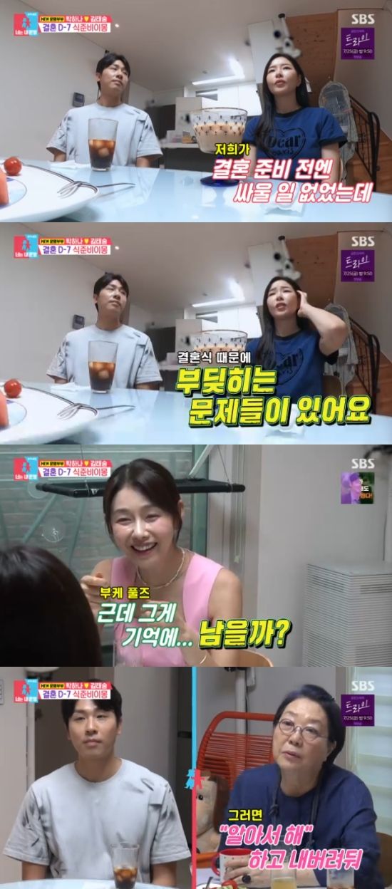 하지만 연애 때 싸우지 않던 두 사람이 결혼식을 앞두고 부딪히는 일이 많다고. 박하나는 "저는 한번뿐인 결혼식이니까 파티처럼 하고 싶고, 하객들과 어울릴 수 있는 결혼식을 하고 싶다"고 했고, 박태술은 "저는 담백한 결혼식을 하고 싶다"고 정반대의 생각을 드러냈다.