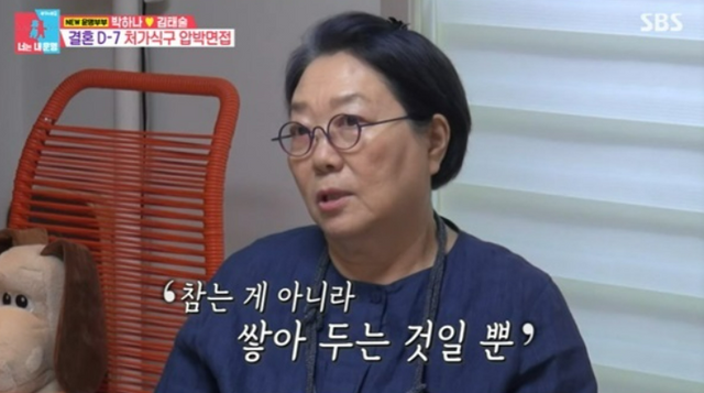 양희경은 14일 방송된 SBS 예능프로그램 ‘동상이몽2-너는 내 운명’(이하 ‘동상이몽2’)에 출연해 김태술이 박하나와 다툰 적이 없다고 말하자 “사람이 참는 건 없다고 한다”고 말했다.