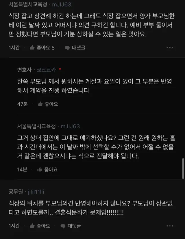 상견례 전에 식장 잡는게 경우 없는 겁니까?