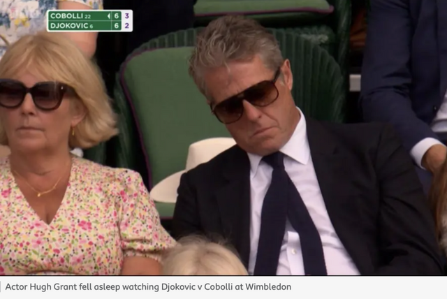 영국 출신의 영화배우 휴 그랜트(64)가 9일(한국시간) 영국 윔블던 센터 코트에서 8강전 경기를 보다가 잠이 들었습니다. 집요한 영국 언론이 중계 화면에 등장한 이 장면을 놓치지 않습니다. "조코비치(세르비아) 경기를 보다가 조는 게 말이 되냐"라며 비꼬는 말도 테니스 팬들로부터 나왔습니다. 그랜트가 앉는 자리는 돈으로 살 수 없는 특별 초대석이어서 그를 향한 조롱과 시샘이 더해지는 듯합니다.