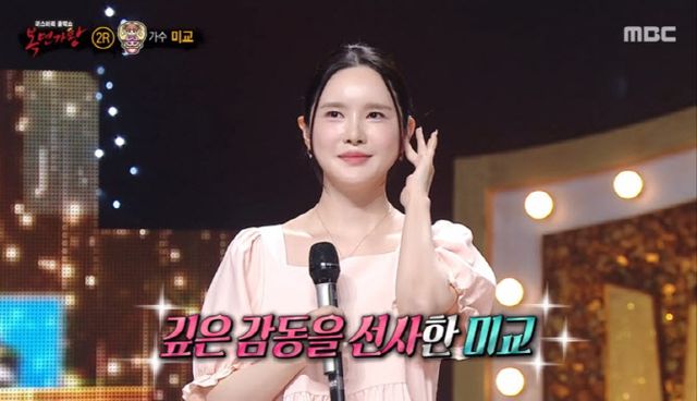 미교는 지난 7월 6일 방송된 1라운드에서 나우즈 현빈(배시시)을 상대로 승리를 거뒀으며, 13일 방송된 2라운드에서는 임지수(생일카드)와 대결 후 가면을 벗고 정체를 공개했다.