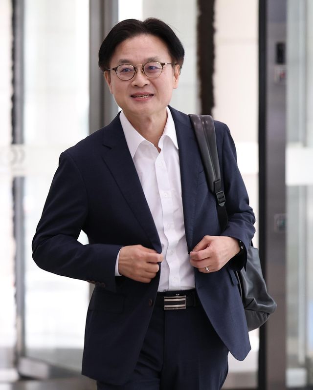 이재명 정부 초대 산업통상자원부 장관에 지명된 김정관 후보자가 지난달 30일 서울 강남구 한국기술센터에 마련된 인사청문회 준비단 사무실로 출근하고 있다. / 뉴스1