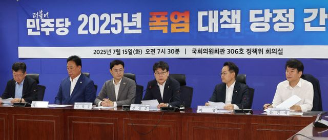 정부와 더불어민주당은 15일 국회에서 당정 간담회를 열고 전력 수급·농수산물 수급·온열질환 예방 등 폭염 대책을 논의했다.