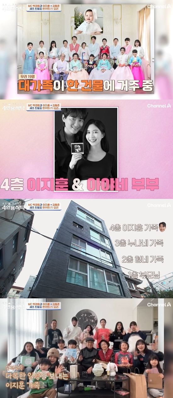 이지훈은 "1층에는 어머니 아버지 계시고, 2층에 형이랑 형수님이랑 4명의 자녀, 3층에는 누나와 매형 그리고 사돈을 모시고 계신다. (3층에는) 다섯 자녀가 있다. 4층에 저와 아야네와 딸이 지내고 있다. 함께 모여서 이야기 나누는 시간을 가져야 가족의 소중함을 알게 된다"라고 밝힌 바 있다.