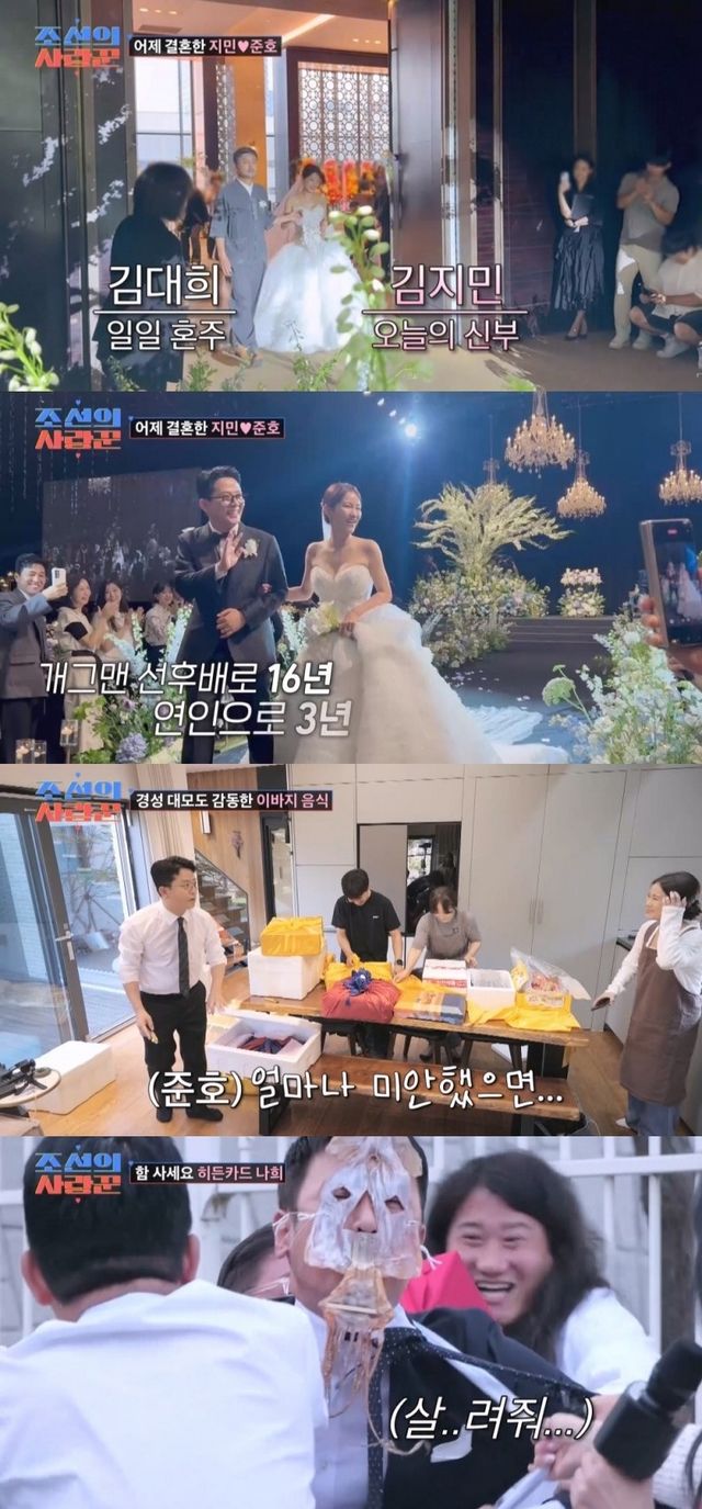 14일 방송된 TV CHOSUN '조선의 사랑꾼'에서는 지난 13일 결혼한 김준호 김지민 부부의 '함 받는 날', 그리고 결혼식 당일이 공개됐다.