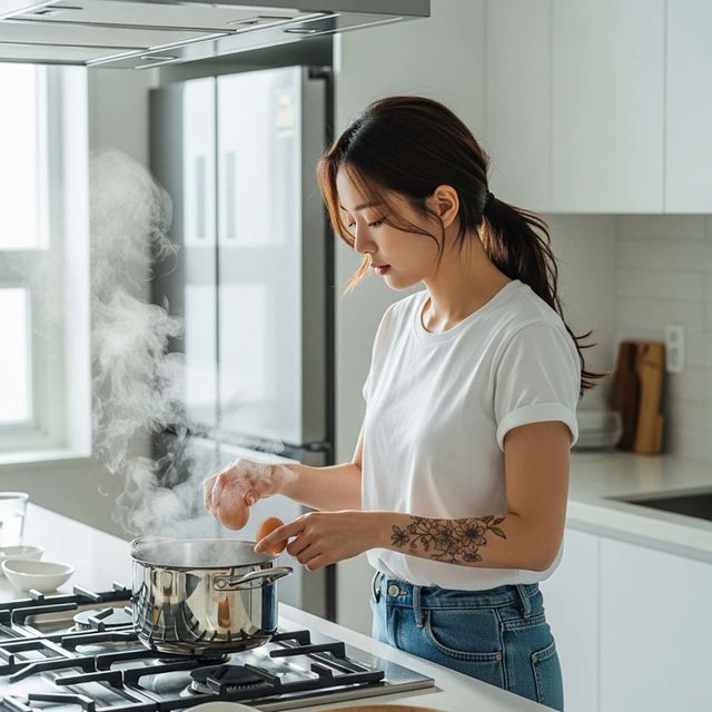 한 네티즌은 끓는 물에 계란을 4분 30초간 삶은 뒤 불을 끄고 11~12분간 물에 그대로 두는 방법을 공유했다. 이 방식은 잔열로 계란이 쫀득한 반숙으로 익으며, 껍데기도 쉽게 까진다고 한다. 가스비 절약도 큰 장점으로 꼽혔다. 비슷한 맥락에서 3분만 끓이고 원하는 시간만큼 물에 담가두면 불을 계속 켜지 않아도 계란이 익는다고 주장하는 의견도 있었다.