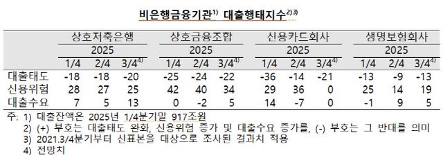 비은행금융기관의 대출태도는 모든 업권에서 강화 기조를 유지할 것으로 전망됐다. 이는 차주의 채무상환능력 저하 등에 대한 우려가 지속되는 가운데, 연체율이 상승세를 보임에 따라 자산건전성 관리가 필요해서다.