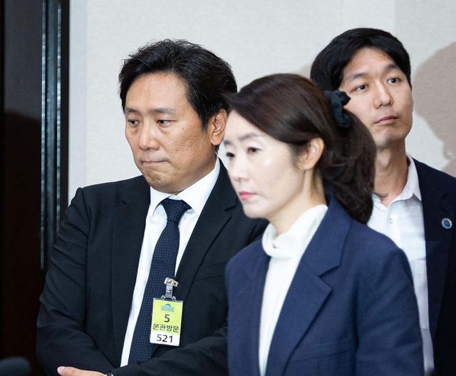 14일 서울 여의도 국회에서 열린 강선우 여성가족부 장관 후보자 인사청문회에 증인으로 출석한 이의일 엑셀세라퓨틱스 대표 앞으로 강 후보자가 지나고 있다. / 뉴스1