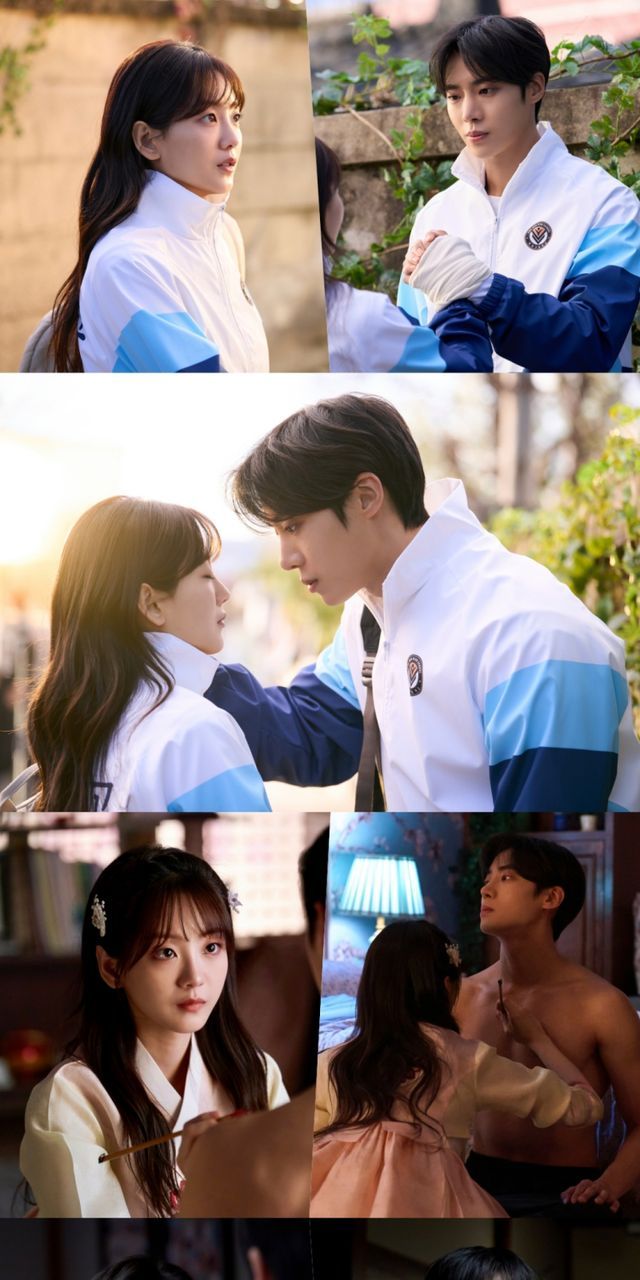tvN 월화드라마 ‘견우와 선녀’ 측은 8회 방송을 앞둔 15일, 박성아(조이현 분)와 배견우(추영우 분)의 ‘두근두근’ 입맞춤 1초 전을 공개했다. 서로의 마음을 확인한 박성아와 배견우. 위기 속에도 달콤한 눈맞춤이 가슴 두근거리는 설렘을 자아낸다. 여기에 박성아가 배견우인지 악귀 봉수(추영우 분)인지 모를 몸에 부적을 새기는 모습에 이어진 염화(추자현 분)의 광기 서린 눈빛은 궁금증을 높인다.