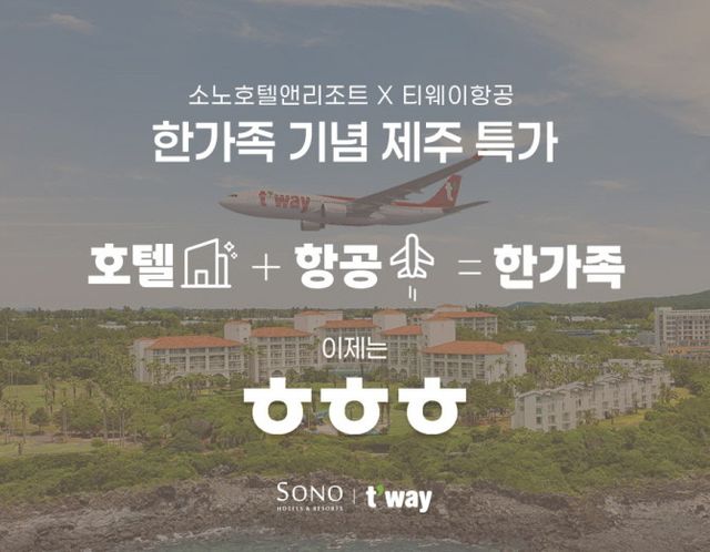 대명소노그룹 소노인터내셔널은 티웨이항공과 한가족으로 동행하게 된 것을 기념해 항공과 숙박을 연계한 '이제는 ㅎㅎㅎ(항공+호텔=한가족)' 프로모션을 진행한다고 밝혔다.