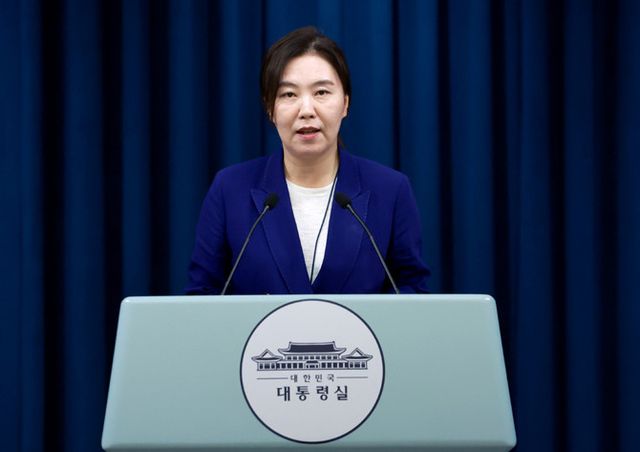 강유정 대변인은 15일 용산 대통령실 브리핑룸에서 국무회의 결과와 에이펙 초청 서한에 대해 브라핑했다. ⓒ 연합뉴스