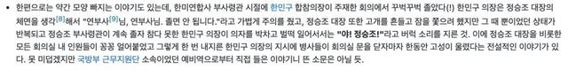 한민구가 연부사님 이라고 그래도 존중을 하면서 주의를 줬는데