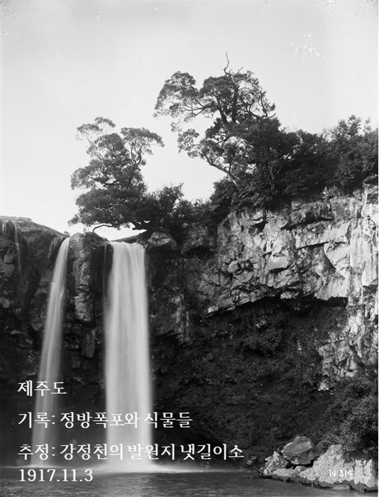 15일 한라일보 취재를 종합하면 국립수목원이 공모전에 맞춰 지난 10일부터 홈페이지에 공개한 38점 중에는 제주 관련 자료 6점이 들어 있다. 이 가운데 1917년 11월 3일 촬영됐다는 '제주도 서귀포 정방폭포 구상나무' 사진이 논란이 됐다. 수종이 구상나무로 보이지 않는 데다 폭포 높이 등을 감안할 때 정방폭포로 판단하기 어려워서다.